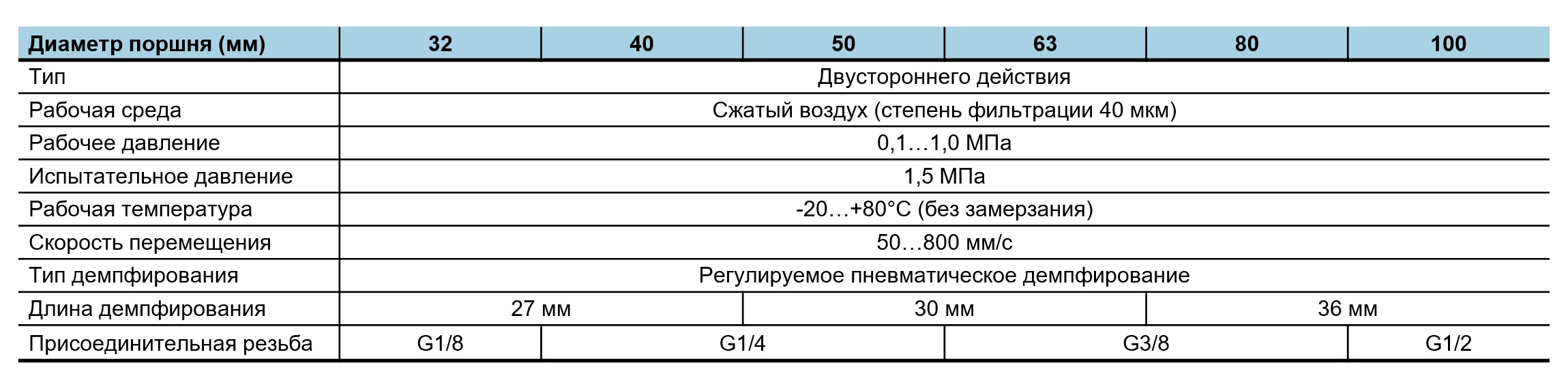 - отличное поглощение энергии удара в конце хода благодаря встроенному регулируемому пневматическому демпфированию;