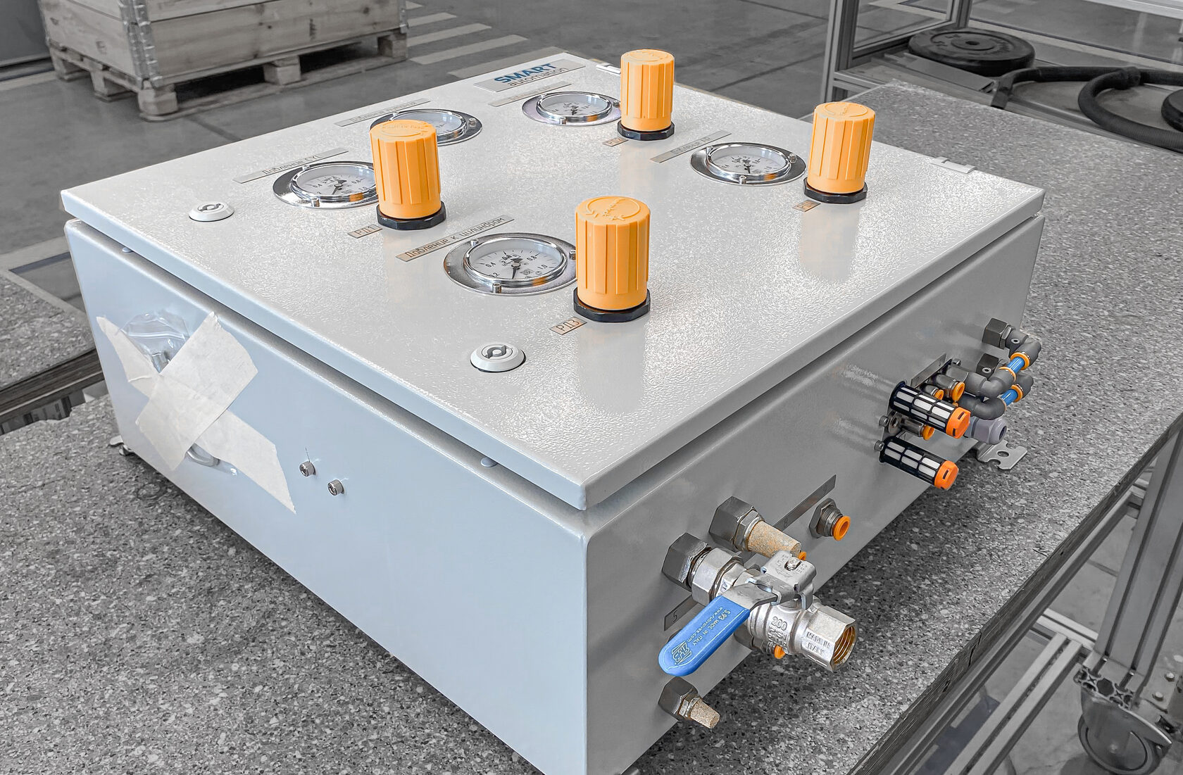 - Шкаф управления может быть оснащен системами безопасности, такими как предохранительные клапаны, сенсоры безопасности или системы аварийного отключения. Это помогает обеспечить безопасность оператору.