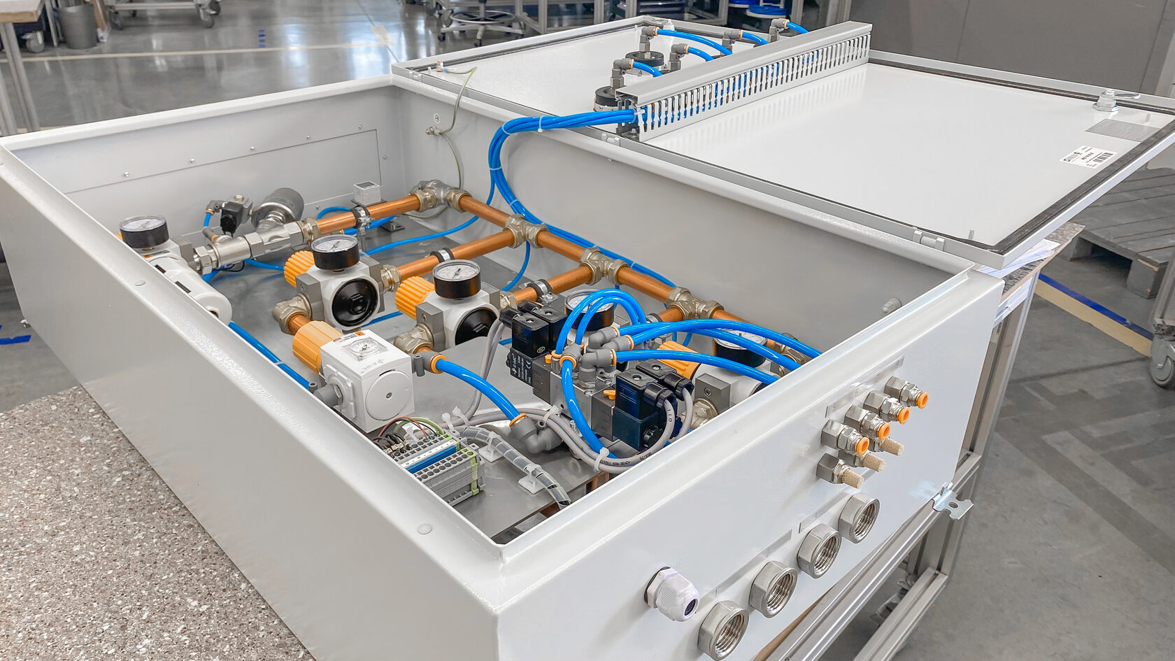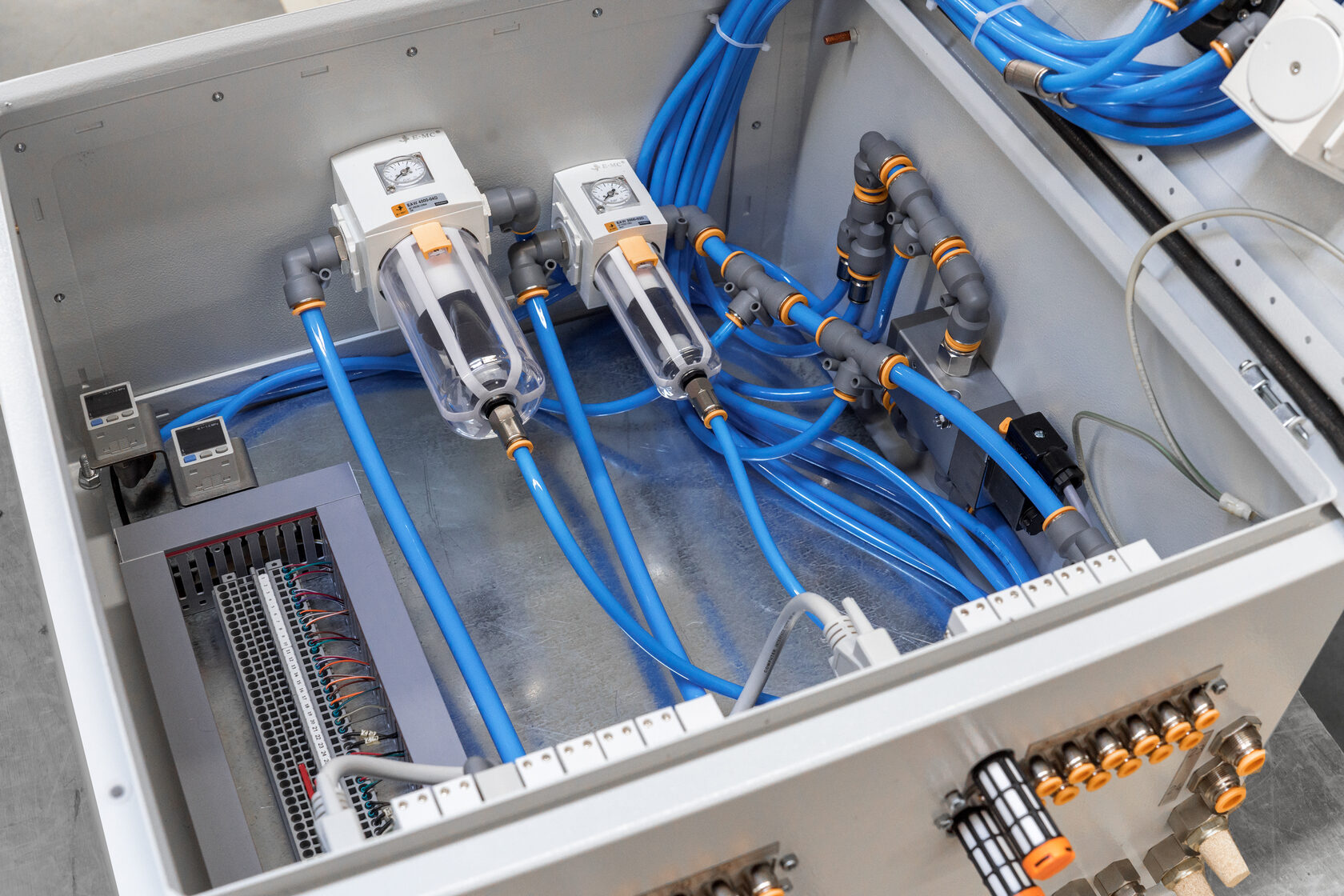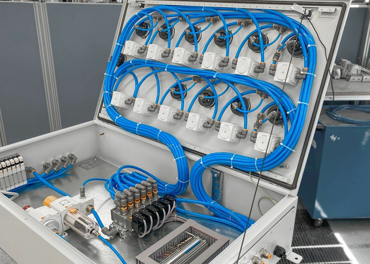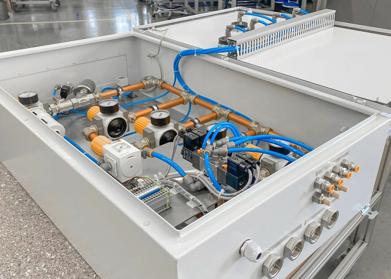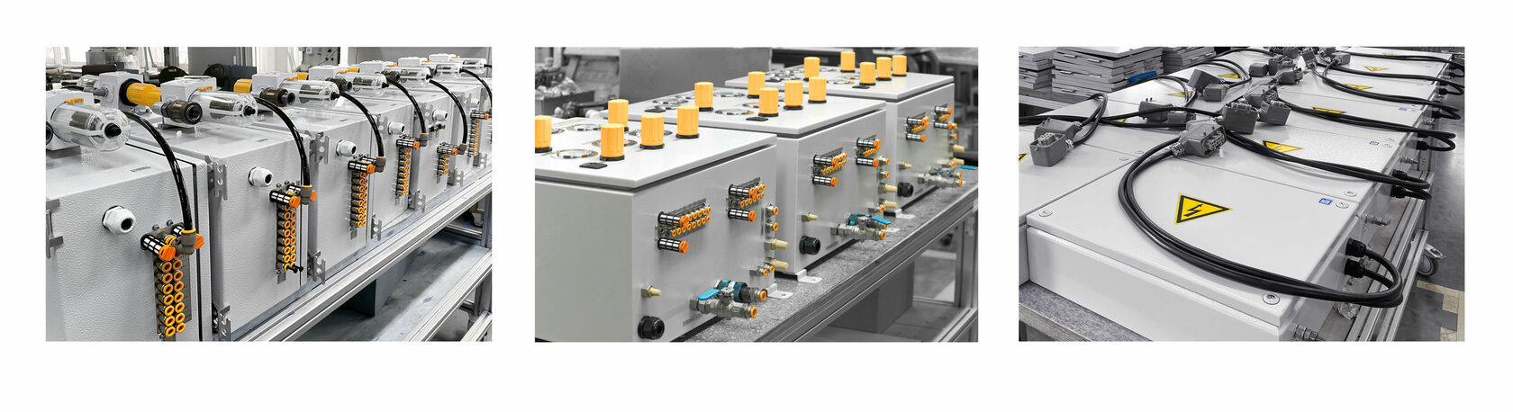 Используя новую элементную базу, мы, как и раньше, предлагаем вам высококачественные и индивидуально разработанные пневматические, электрические и электропневматические шкафы для систем управления технологическими процессами, соответствующих требованиям и спецификациям проекта. Мы проектируем и изготавливаем шкафы как для управления дискретными системами перемещения объектов, так и непрерывными потоками газов и жидкостей.